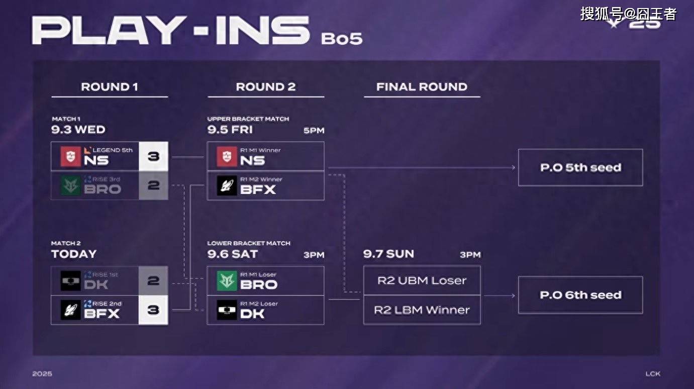 LCK常规赛阶段,已经结束,GEN,T1,HLE,KT已经进入季后赛。剩下的NS,BRO,DK和BFX将打入围赛,四队争夺2个正赛名额,胜者将进入季后赛第一轮。LCK入围赛阶段,于9月3日正式打响,然后10号正式打季后赛,T1和KT选队。